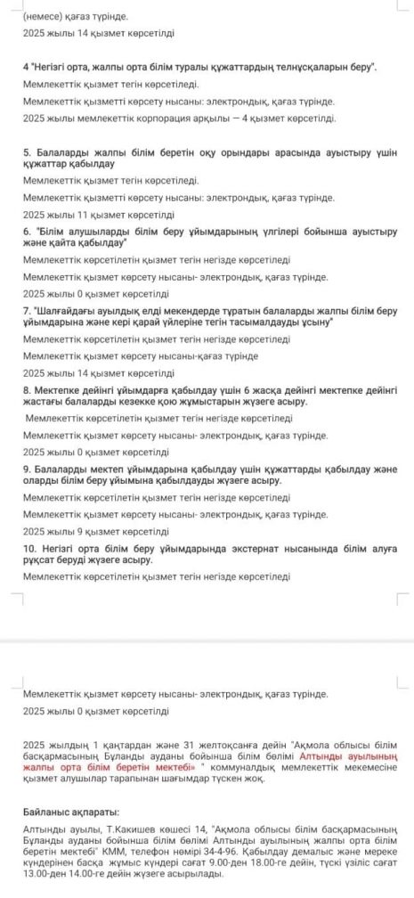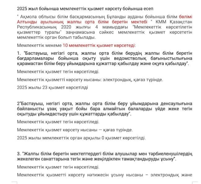Мемлекеттік қызмет көрсету бойынша есеп